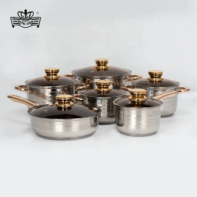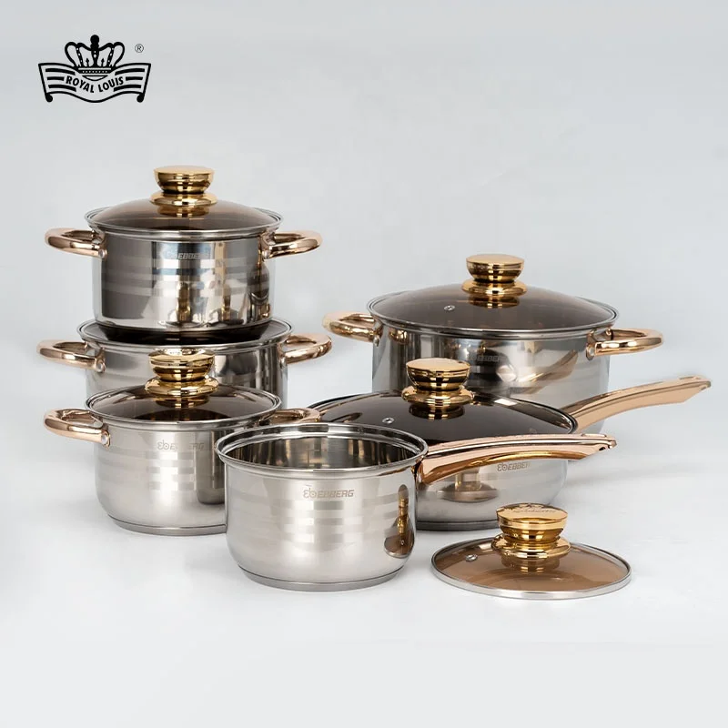 German Design Large Commercial 12 Pcs Stainless Steel Cookware Sets With 5-layers Bottom For Home And Kitchen Utensil.