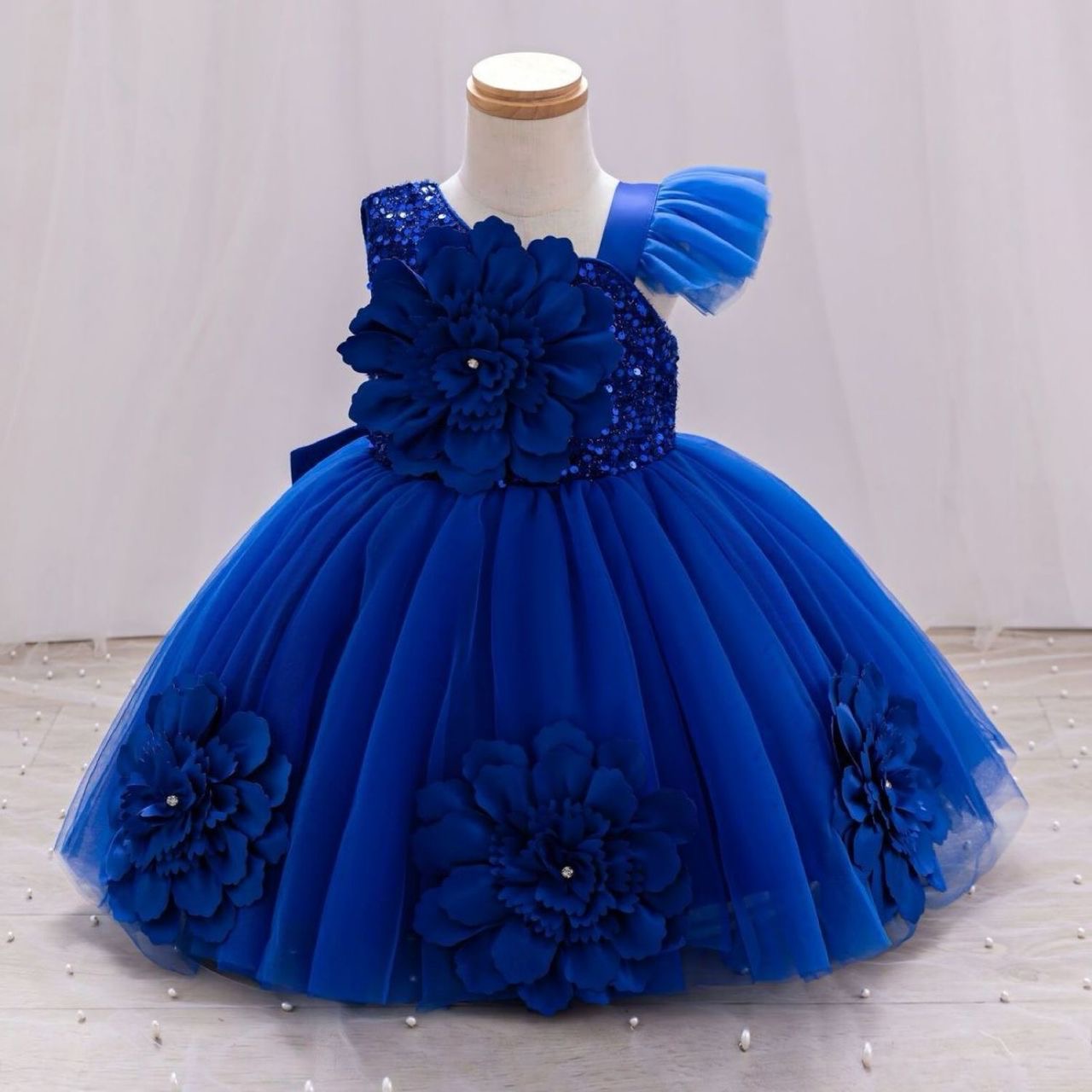 Let your baby sparkle with elegance in this Blue Quality Baby Gown, beautifully made with premium satin, delicate lace, and layered tulle for that fairytale look. The gown features lovely floral appliqués, a smooth inner lining for comfort, and a stunning flare design that makes it perfect for photoshoots, parties, and special celebrations.