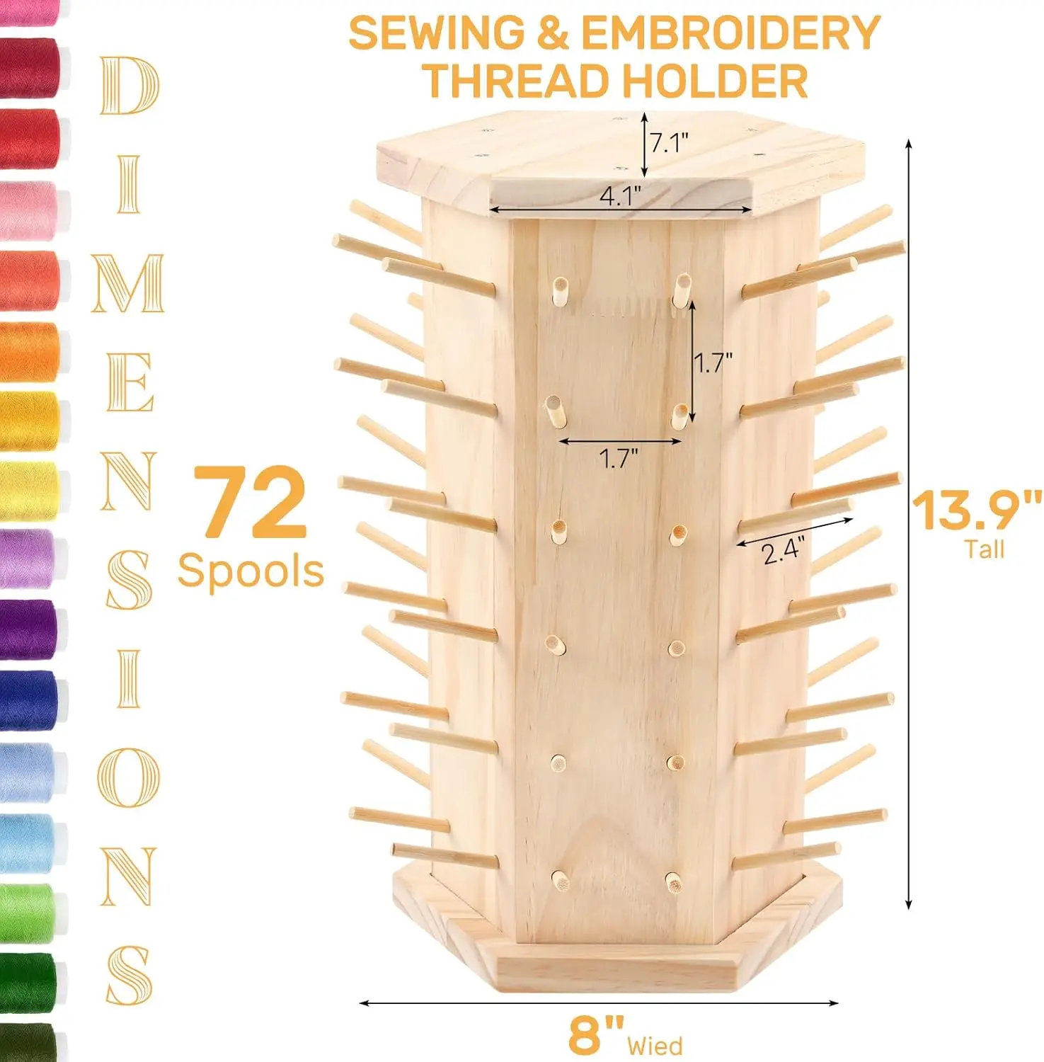 Wooden Thread Holder Sewing and Embroidery Thread Rack and Organizer Thread Rack for Sewing with Hanging Hooks