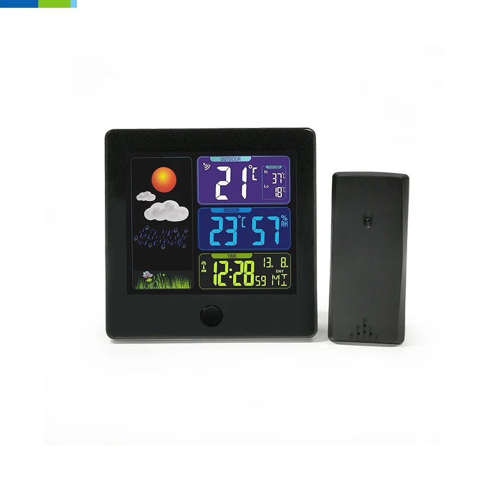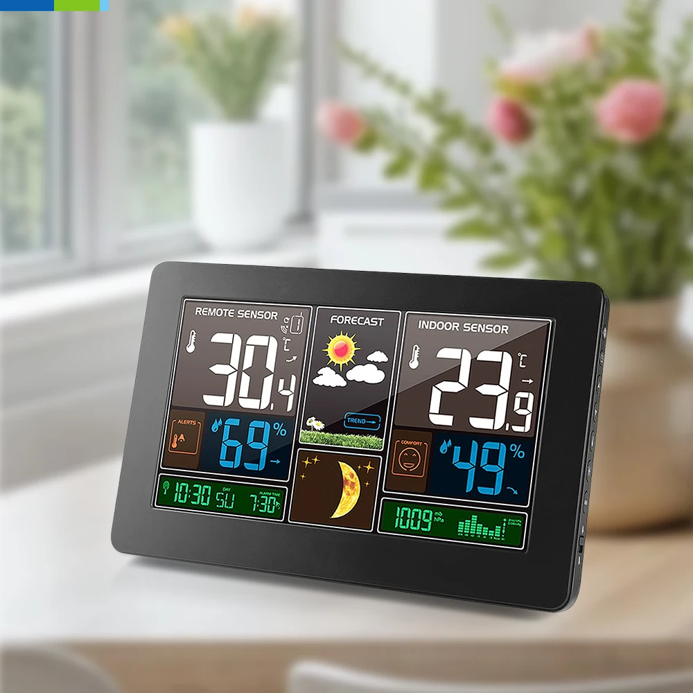 Smart Radio Control Weather Forecast Clock with LED Backlight Perpetual Calendar & Day of Week Touch Snooze Alarm 12/24H Display