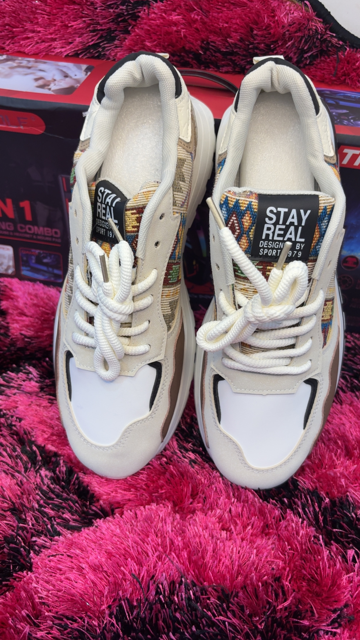 Bring bold fashion and comfort together with the Stay Real Men’s Casual Sneakers, designed for men who love to stand out. These sneakers combine a clean white base with striking multicolor woven patterns for a stylish and modern look that easily elevates any casual outfit.