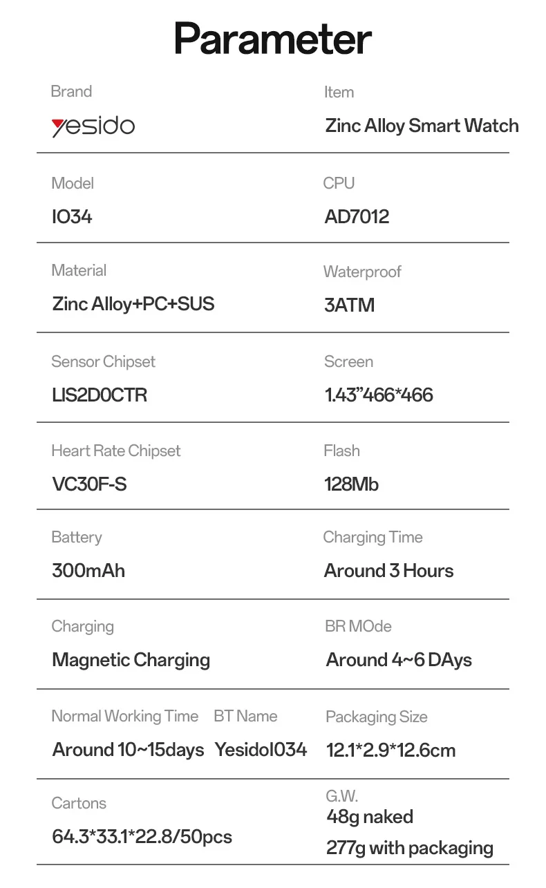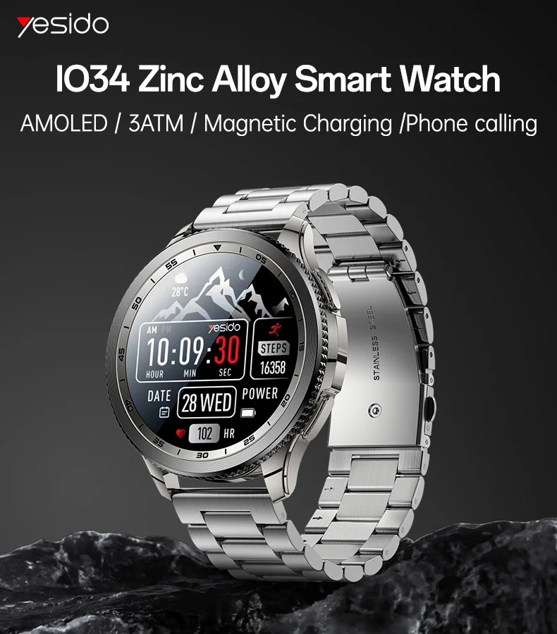Be the first to review “Yesido 1.43′ AMOLED Screen 3ATM Phone Calling Rotating Control Magnetic Charging Zinc Alloy Smart Watch IO34”